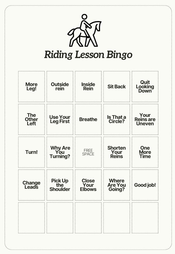 Riding Lesson Bingo Card