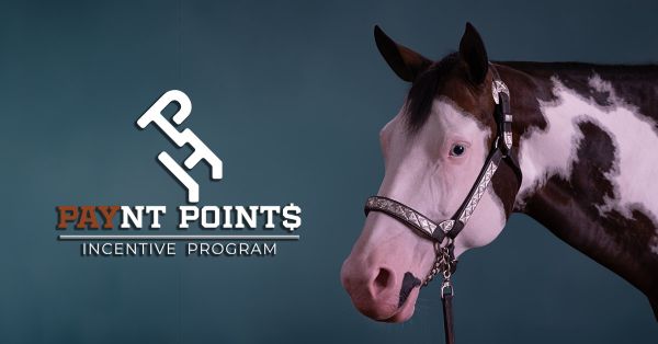 For 2026, all APHA points are eligible for Paynt Points payout (Open, Amateur, Youth, Novice & Walk-Trot). Horses with 12 inches or more of continuous white markings in the qualifying area and visible from a normal standing position earn even more through the Color Bonus program—fill out the Color Bonus Declaration Form to see if your horse qualifies for extra cashback.