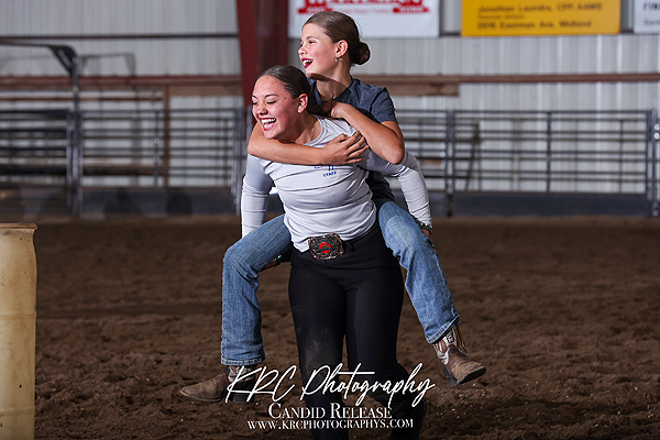The Championship Sho also featured ShoMe’s signature special events, including a Top Farm Hand competition held Thursday evening in which competitors faced off in a hay bale toss, weighted wheelbarrow race, and speed stall mucking. When the last bale fell, Dalton Sabo came out on top, with Dave Lane and Chad Pierce earning 2nd and 3rd, respectively. Friday’s schedule wrapped up with Buddy Barrels, a piggyback style barrel race. Fisher Mayes and his partner, Gemma Bontrager, took home the honors.