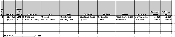 Results for 2024 Arizona Sun Circuit with six stakes classes and over $15,000.00 in cash and prizes:
