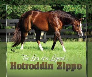 On June 25, 2019, the Quarter Horse world lost a legend with the passing of Hotroddin Zippo owned by Pine Meadow Quarter Horses. The loss of the beloved 15.1 hand, chestnut superstar has reverberated across the industry, as this talented and sweet-natured stallion created a lasting legacy in both the show pen and breeding shed.